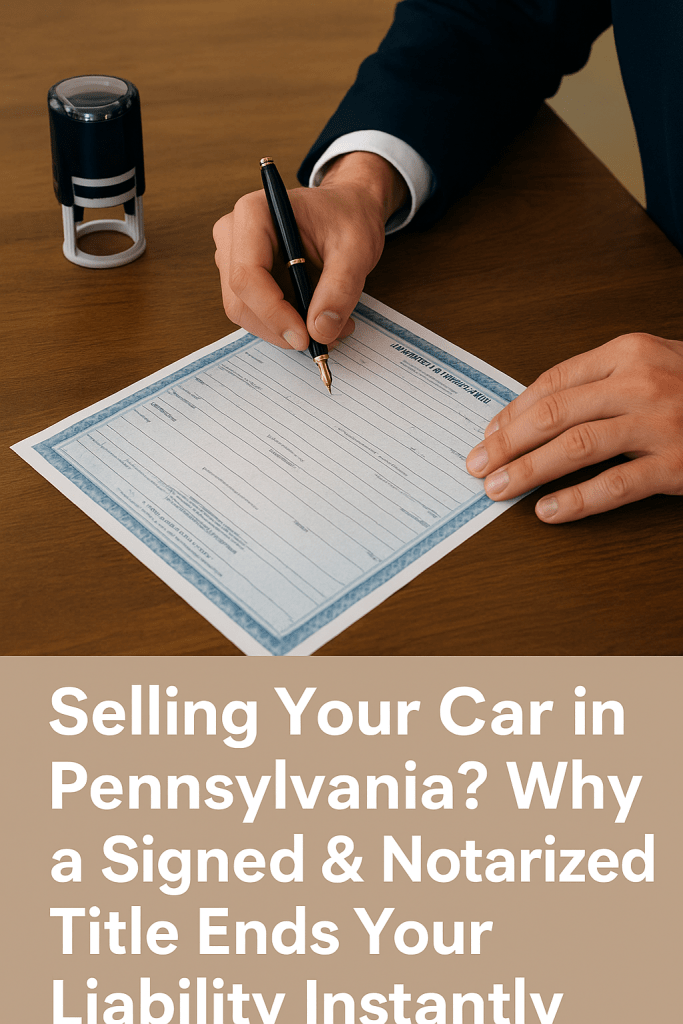 In Pennsylvania, one of the most common misunderstandings about selling a vehicle is the belief that you remain legally responsible for it until you personally visit a title transfer or tag agency with the buyer. While it is understandable to want extra reassurance when parting with a vehicle you have owned, the truth is that the law clearly allows for a legal and binding transfer of ownership when the title is properly signed and notarized. Once that process is completed, you are no longer liable for the vehicle.